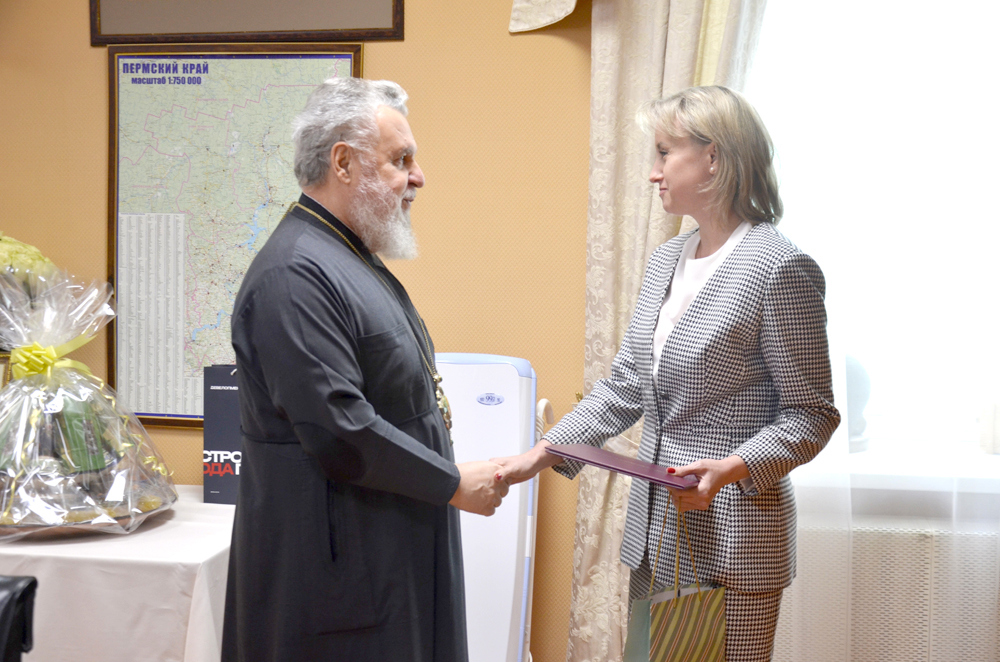 Начальник Управления Минюста России по Пермскому краю Ирина Дядичева лично поздравила митрополита Мефодия с юбилеем.