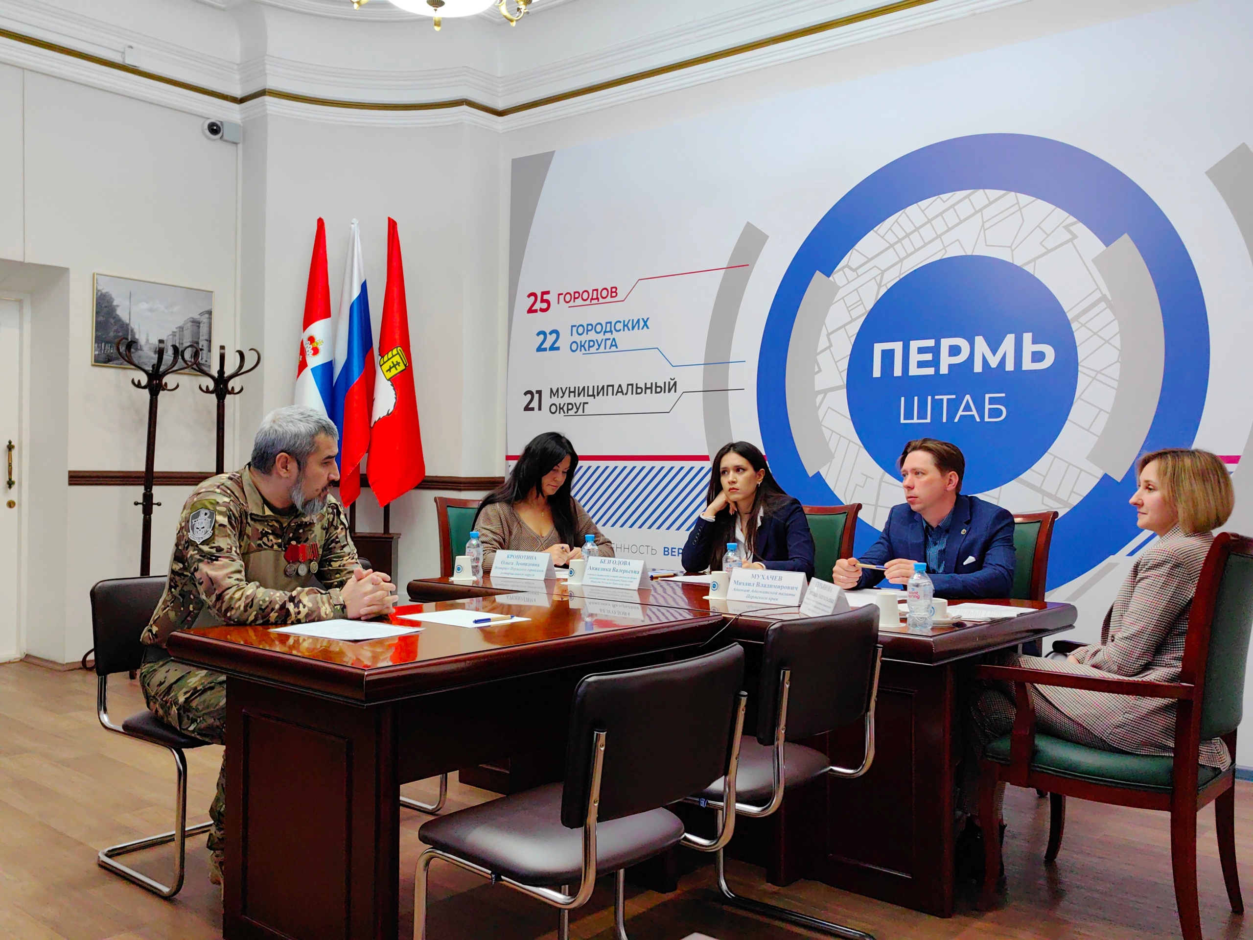 24.04.2024 на площадке Штаба общественной поддержки Пермского края состоялась встреча с жителями Прикамья в очном и онлайн-формате, которую провели представитель Управления Безгодова Анжелика, адвокат адвокатской палаты Пермского края Мухачев Михаил, нотариус Пермского городского нотариального округа Кропотина Ольга и представитель Государственного юридического бюро Пермского края Гурьянова Светлана.